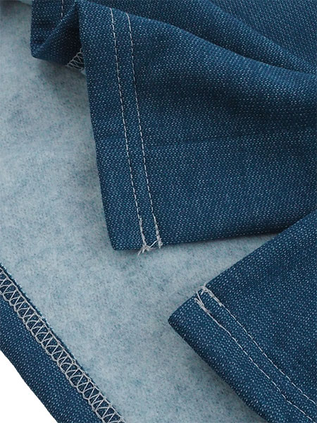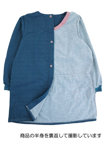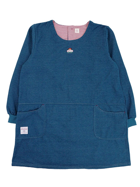 シンプルなニットのデニム調生地にやさしい肌ざわりの裏起毛で暖かく着心地のよいエプロンです。