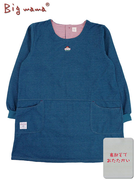 Big mama(ビッグママ) 裏起毛割烹着 デニム調 背ボタン