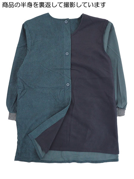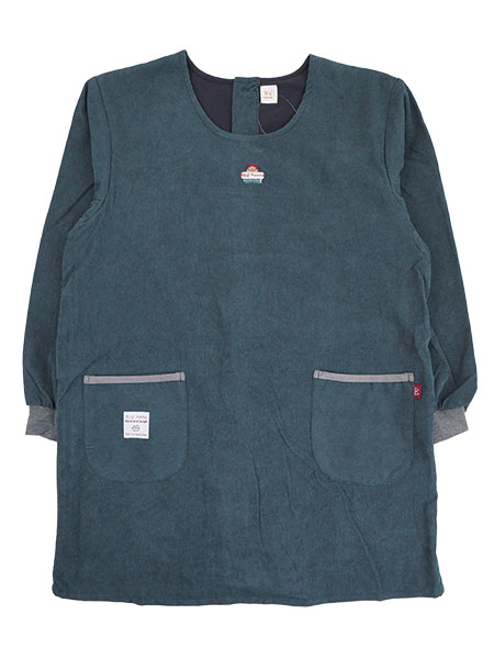 表側がコール天生地で裏側の身頃部分にあたたかいフリースの裏地が付いたエプロンです(袖部分には裏地なし)。
