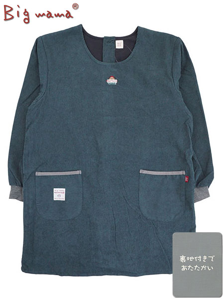 Big mama(ビッグママ) コール天 身頃フリース付き割烹着 無地 背ボタン