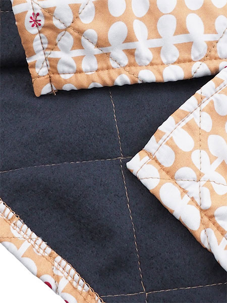 Big mama(ビッグママ) キルト割烹着 裏フリース 幾何学柄 後ろ開き