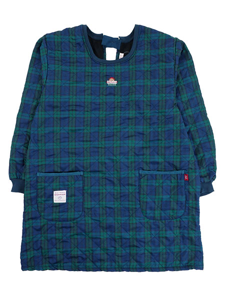 グリーン&ネイビー系のチェック柄のあったかエプロンです。