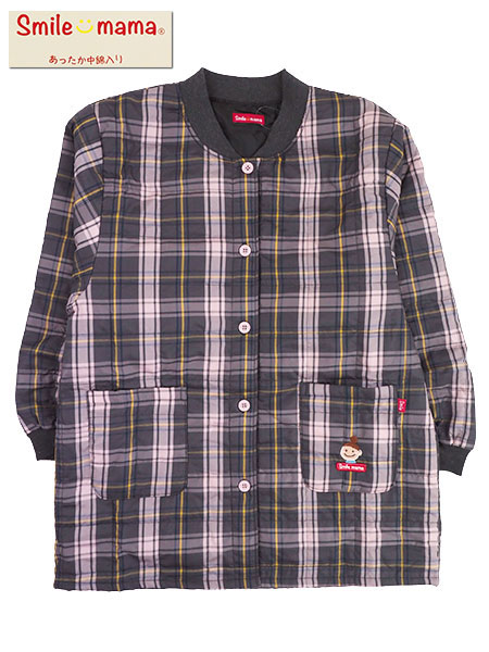 Smile mama(スマイルママ) あったか中綿入りキルトスモック 前あき チェック柄