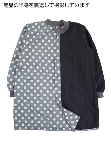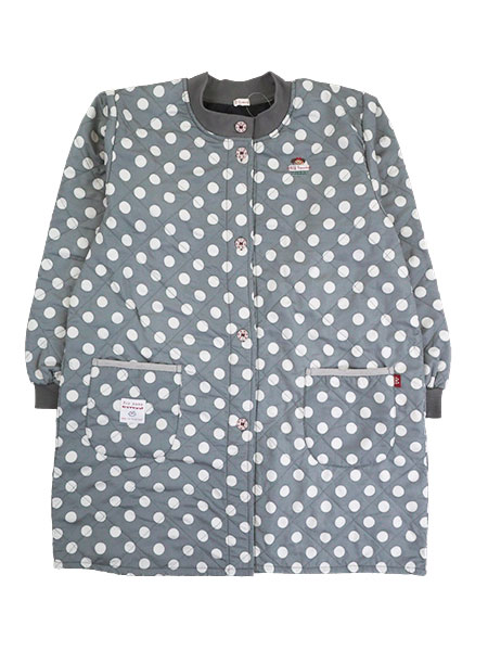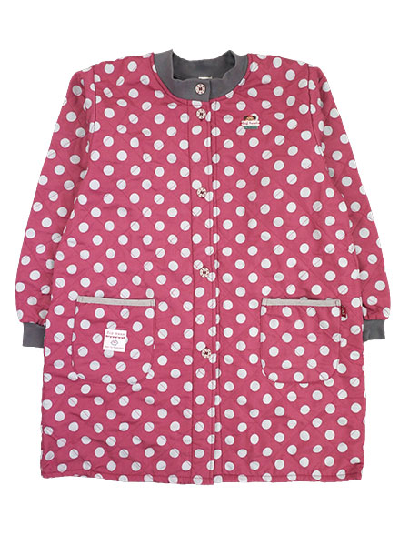 フリースの裏地付きであたたかい水玉柄のキッチンコート。