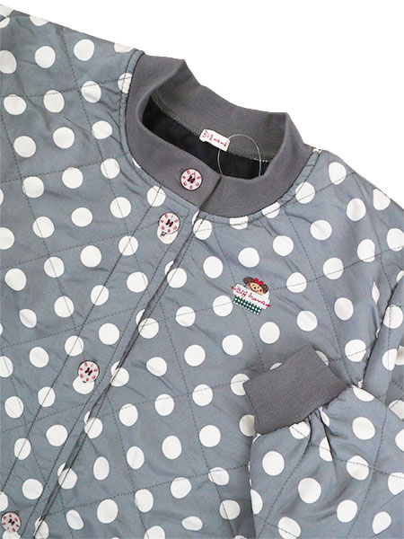Big mama(ビッグママ) 裏フリース前開きキルトスモック 水玉柄