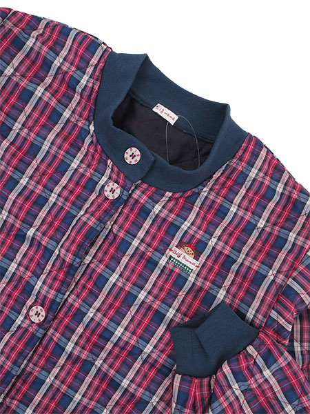 Big mama(ビッグママ) 裏フリース前開きキルトスモック チェック柄