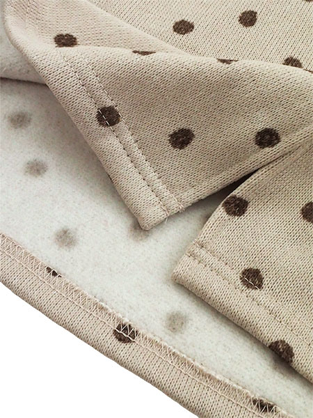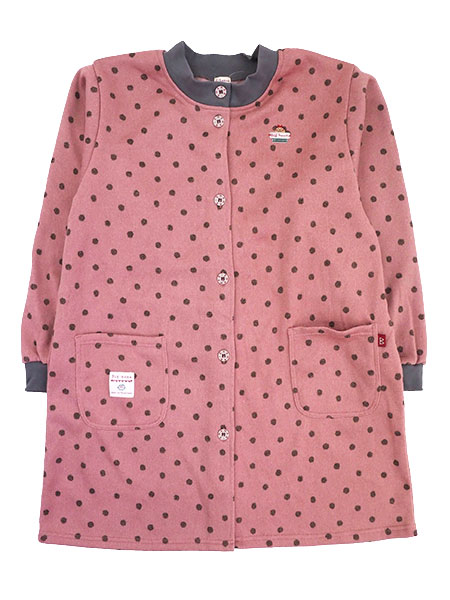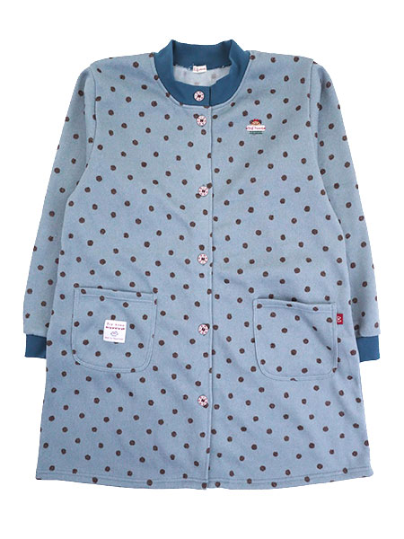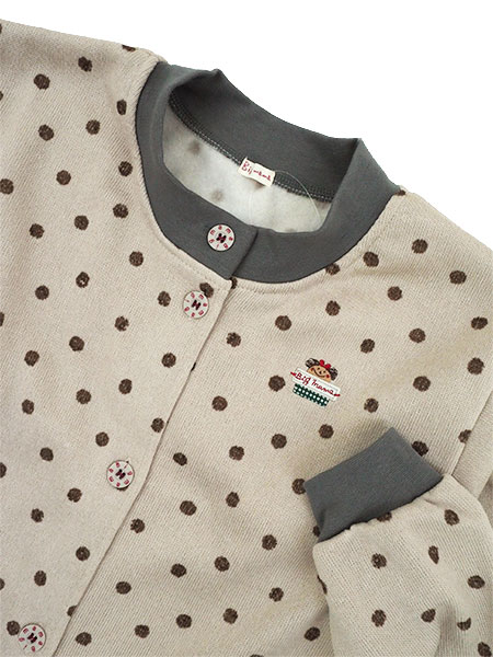裏起毛であたたかい水玉柄ニット生地。着やすい前開きタイプ。