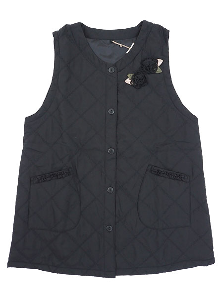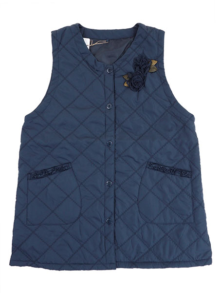 bonte 婦人中わたキルト 花モチーフ付きベスト