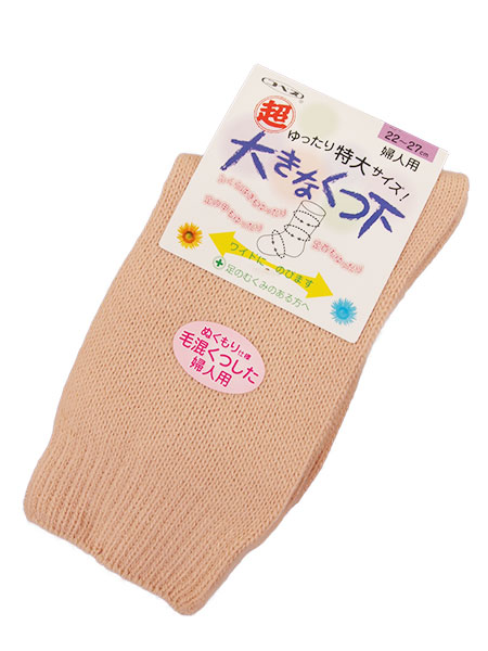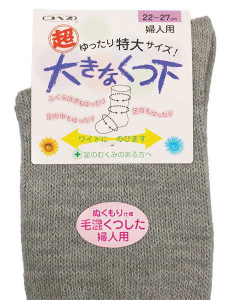 コベス 超ゆったり特大サイズ! 大きなくつ下 婦人ソックス 毛混