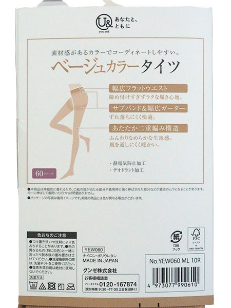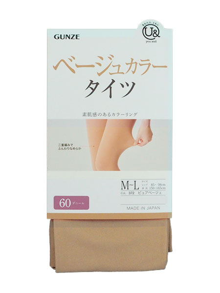 グンゼ、you and、レディースベージュカラータイツ、60デニール。