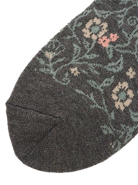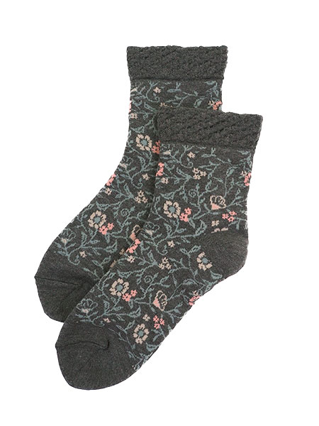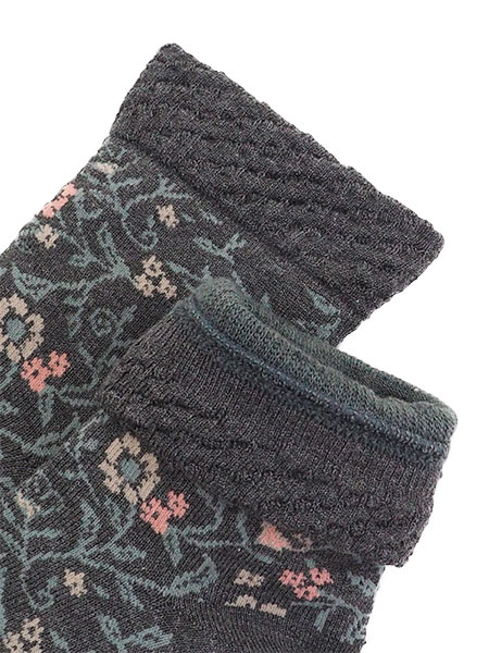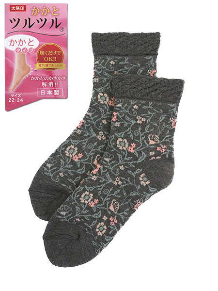 カカトツルツル 婦人ソックス 日本製 花と葉っぱ柄