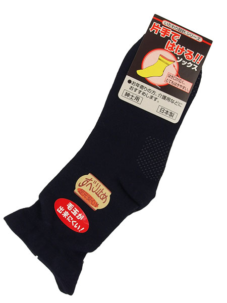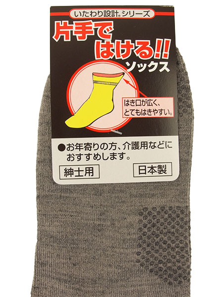 いたわり設計シリーズの片手ではける!メンズソックス。