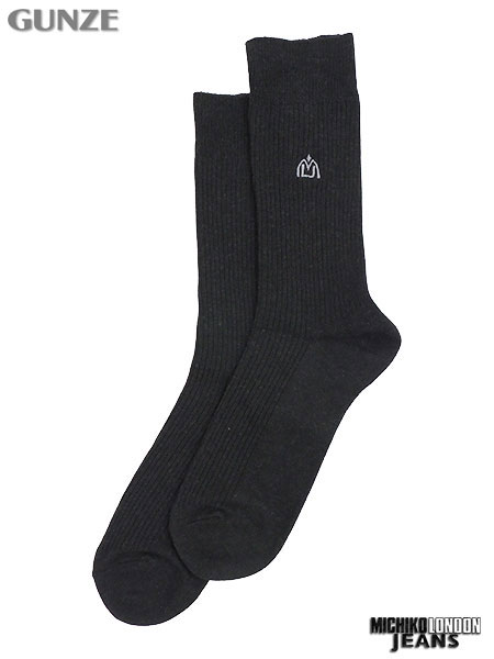 グンゼ MICHIKO LONDON JEANS 紳士ソックス リブ ワンポイント刺繍