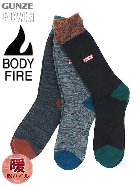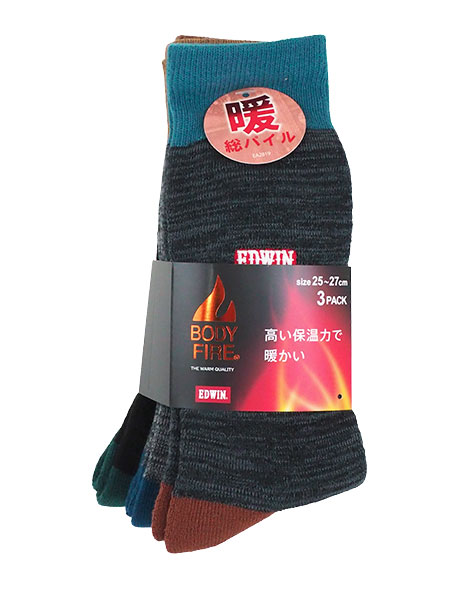 グンゼ EDWIN(エドウィン) 紳士カジュアルソックス 3PACK BODY FIRE 配色切替
