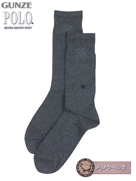 グンゼ POLO ポロ 紳士ソックス メリノウール混 ワンポイント