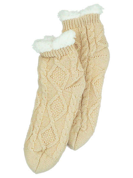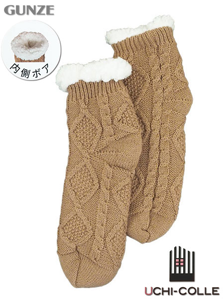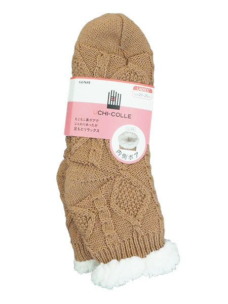 グンゼ ウチコレ 婦人裏ボアルームソックス ケーブル柄