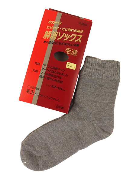 カカトのカサカサ・ヒビ割れの痛さ解消 婦人ソックス 毛混 (1)
