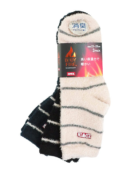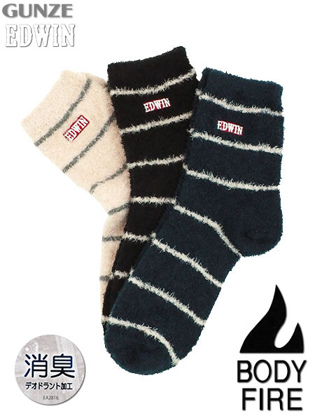 グンゼ EDWIN(エドウィン)婦人ソックス 3PACK 細ラインボーダー もこもこマシュマロタッチ
