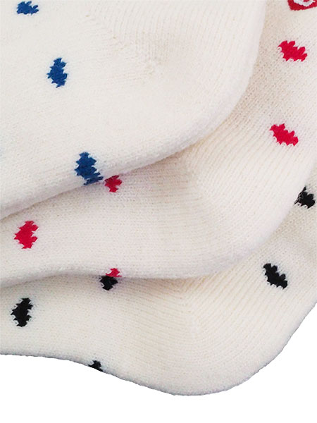 クリーム系の地にブラック、レッド、ブルーのハートのドット柄の3色セット。