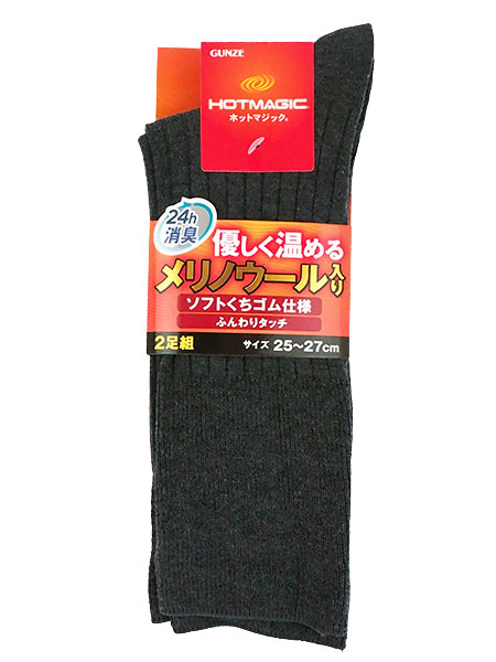 グンゼ HOTMAGIC 紳士ソックス メリノウール入り ソフト口ゴム ふんわりタッチ 2足組