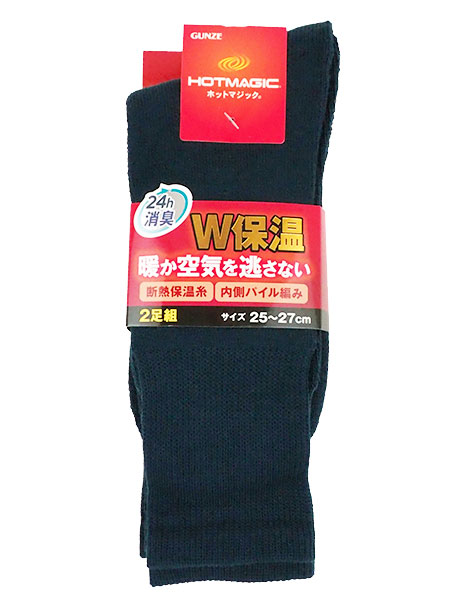 グンゼ HOTMAGIC 紳士ソックス W保温 内側パイル編み 24h消臭 2足組