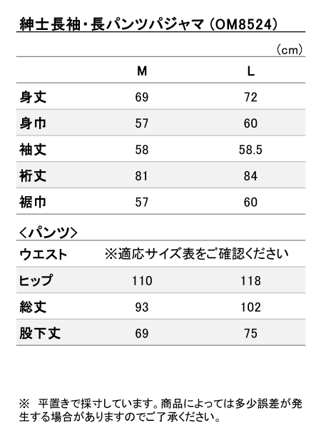 パンツ:前とじ、ややスリムスタイル、両サイドにポケット付き、ウエストゴム取り替え口付き。