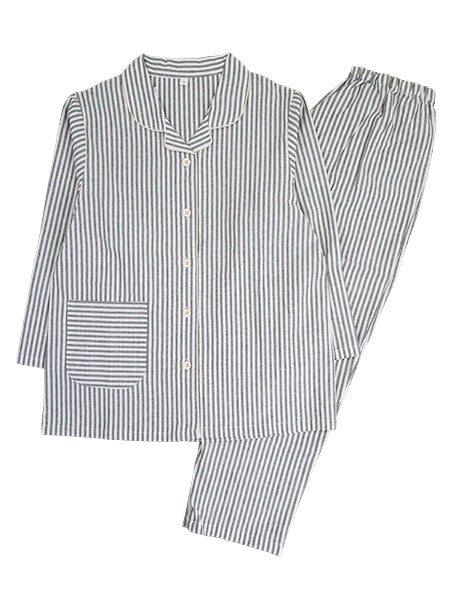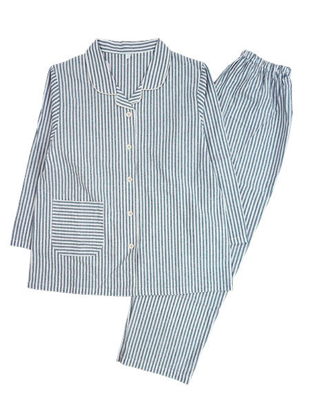 NERUGY 婦人長袖・長パンツパジャマ ストライプ柄 綿100% 先染めシーチング