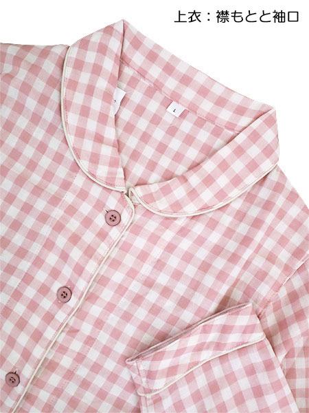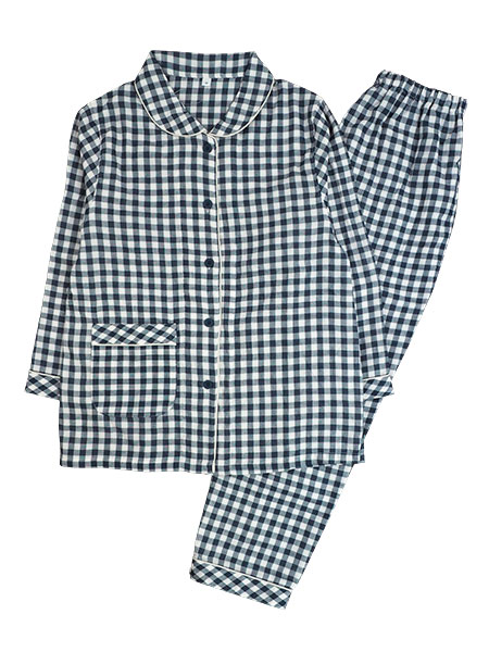 NERUGY 婦人長袖・長パンツパジャマ 綿100%ダブルガーゼ ギンガムチェック柄