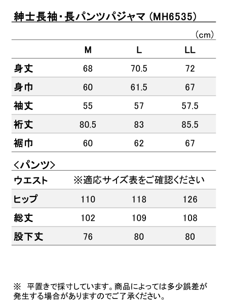 パンツ:前とじ、裾ゴム入り、両サイドにポケット付き、ウエストゴム取り替え口付き。