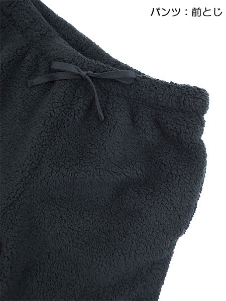 パンツ:前とじ、裾ゴム入り、ウエスト調整ひも付き、両サイドにポケット付き、ウエストゴム取り替え口なし。