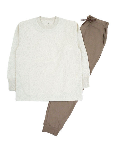 パンツ:ウエスト紐付き、両サイドにポケット付き、裾口リブ仕様、ウエストゴム取り替え口付き。