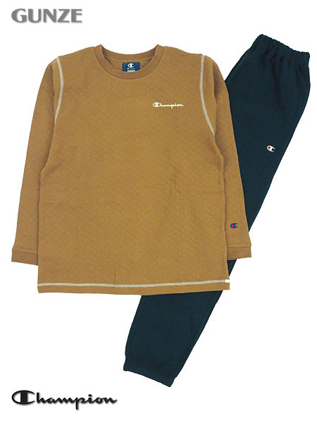 GUNZE(グンゼ)Champion(チャンピオン)婦人長袖・長パンツパジャマ 無地 ダイヤキルト