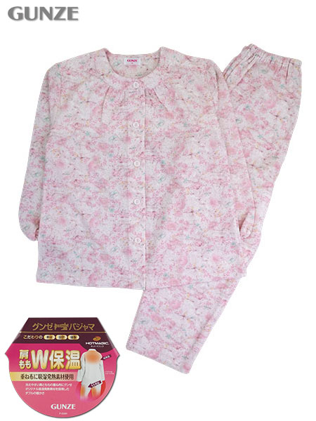 グンゼ ホットマジック 婦人長袖・長パンツパジャマ 肩ももW保温 花柄