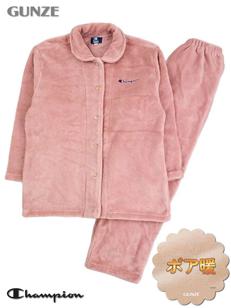 グンゼ Champion(チャンピオン)婦人長袖・長パンツパジャマ ボア 襟付き 前あき