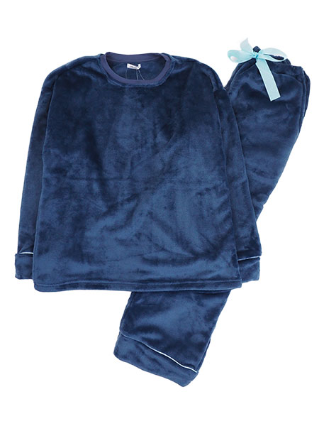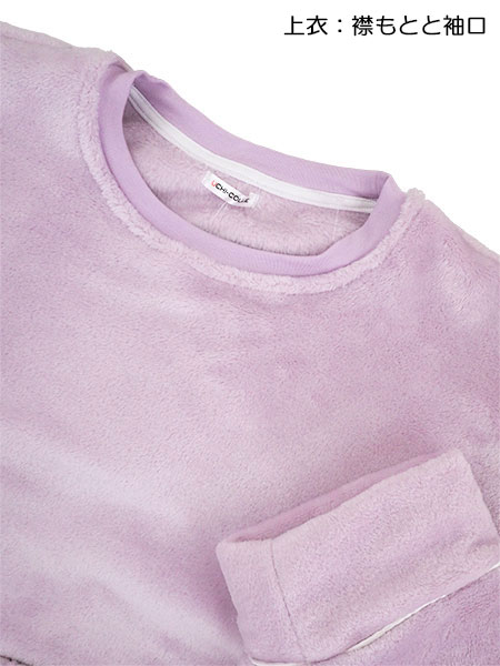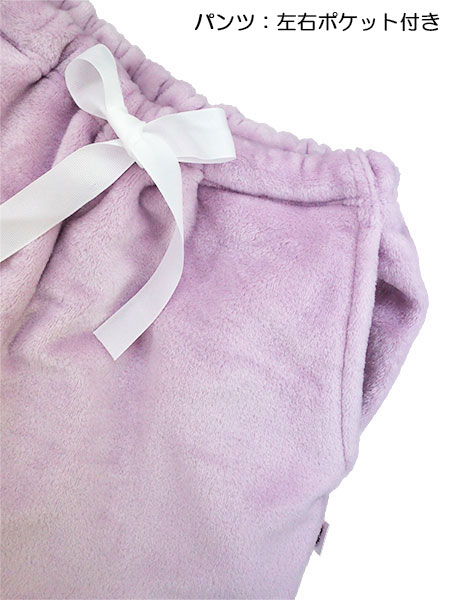 ふんわり厚手で暖かいフリース素材。パンツのリボンがかわいいアクセントになっています。