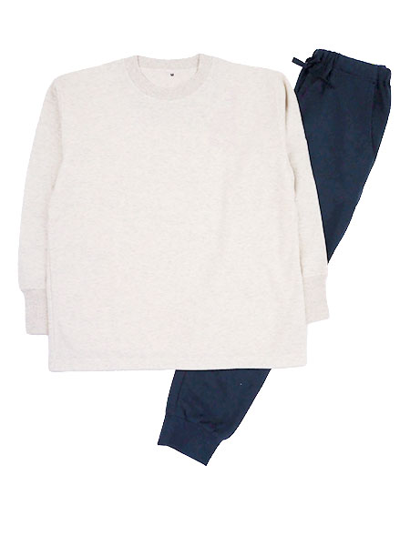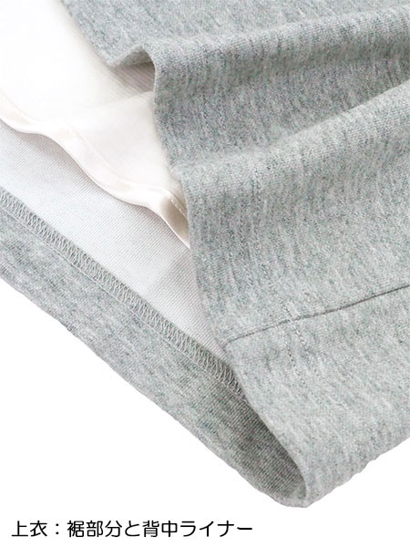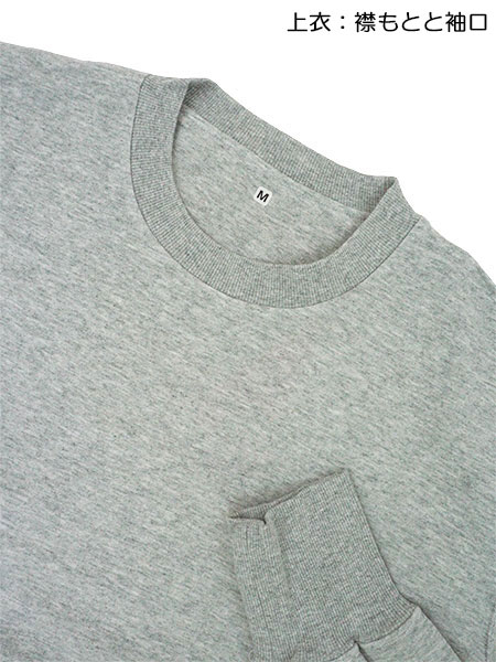 上衣:丸首、首回り・袖口がリブ仕様、後ろ身頃にライナー付き・かぶりタイプ