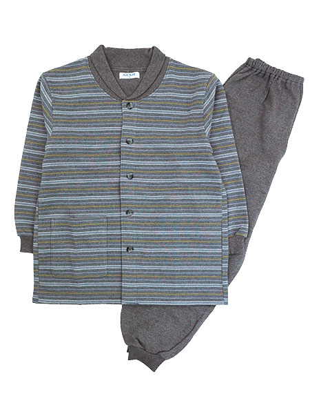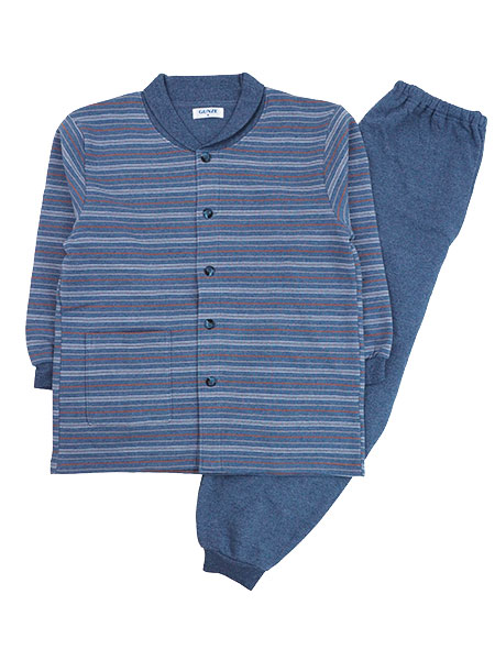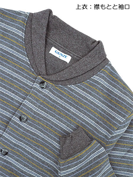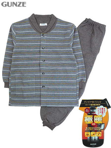 グンゼ 紳士長袖・長パンツパジャマ 極暖 裏起毛 ボーダー柄 襟付き まるで魔法瓶