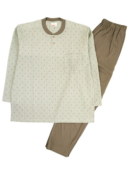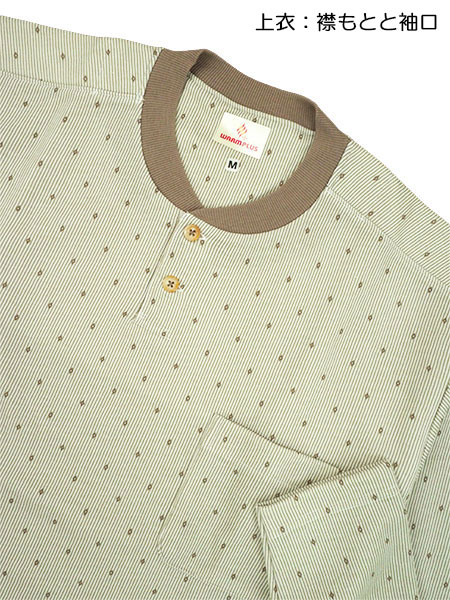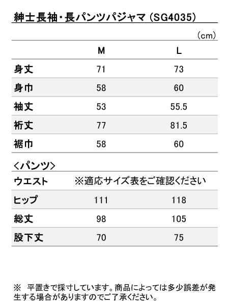 ■素材:本体:上衣:綿55%・ポリエステル45% パンツ:綿65%・ポリエステル35%(ダンボールニット) 首ゴム部:綿95%・ポリウレタン5% 重ね布部:綿55%・ポリエステル25%・レーヨン20%(発熱ソフトキルト)(冬用)