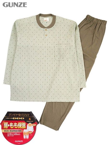 グンゼ WARMPLUS 紳士長袖・長パンツパジャマ 肩・もも保温 かぶりタイプ