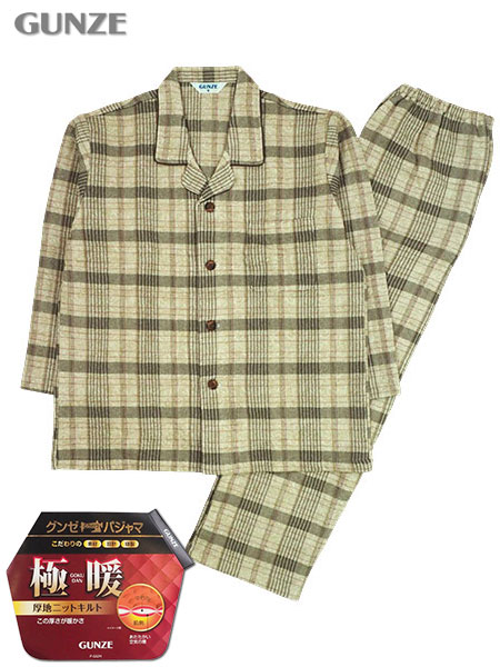 グンゼ 紳士長袖・長パンツパジャマ 極暖 ペイズリーチェック柄 スーパーバルキー