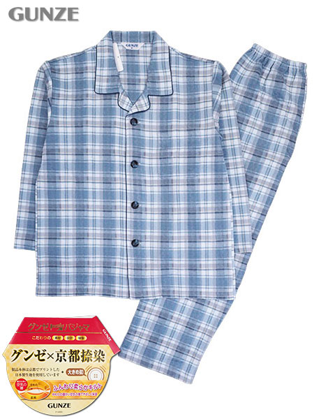 グンゼ 紳士長袖・長パンツパジャマ 大きめ釦 京都捺染 ソフトキルト