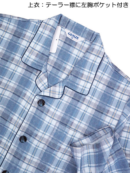 GUNZE(グンゼ)メンズ長袖パジャマ、グンゼ×京都捺染、着脱しやすい大きめボタン。
