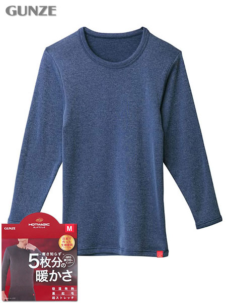GUNZE(グンゼ)HOTMAGIC(ホットマジック)寒さ知らず、メンズの丸首ロングスリーブシャツ。
