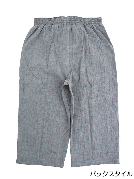 紳士楊柳先染カジュアルステテコ 前あき (7分丈ロングパンツ) 綿100% 無地