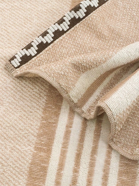綿100%、無撚糸使用、ジャカードのバスタオル、ジャカード織りなので、表裏の色が反対になります。
