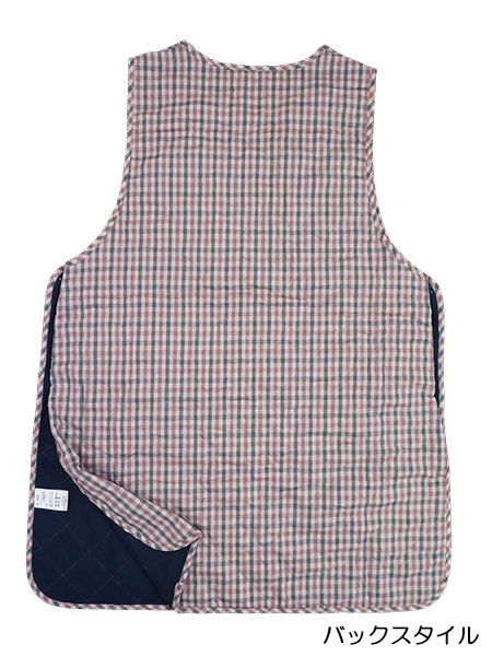 Smile mama(スマイルママ) キルト裏フリース ラン型かぶりエプロン チェック ロングタバー