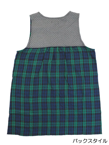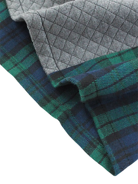無地のフクレニット生地とチェックの布帛生地の切り替えデザイン。