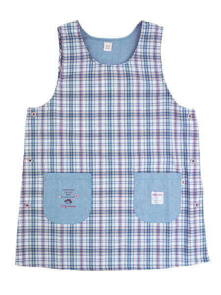 両脇がボタン開きのかぶって着るタバードエプロンです。