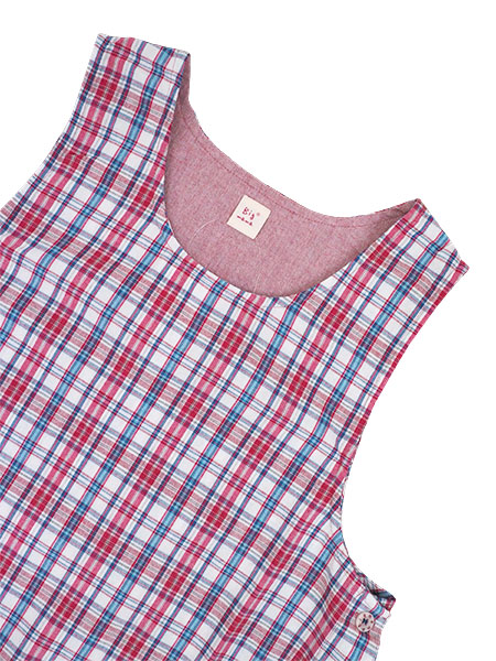 Big mama(ビッグママ) ラン型 かぶりエプロン サイドボタン チェック柄 タバード
