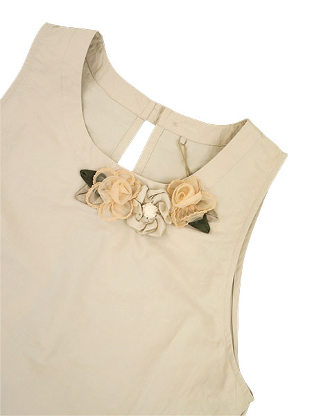 後ろはネック部分ワンボタン留め、ウエストひも調節です。